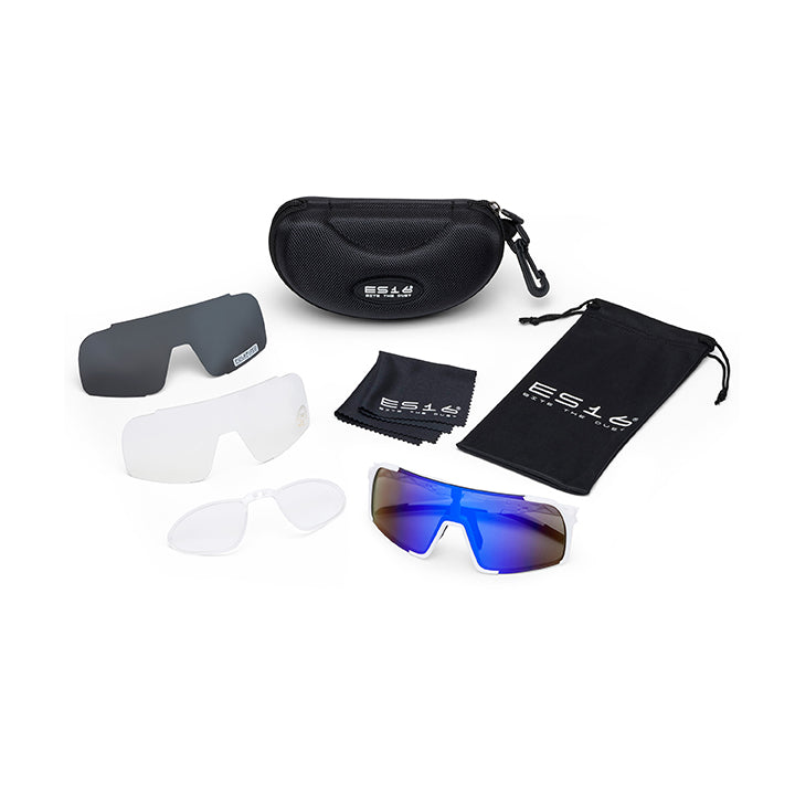 ES16 Enzo bril. Wit met blauwe lens. + 2 extra lenzen