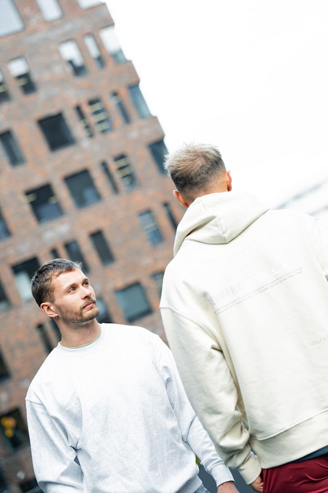 La maglietta ha una tasca a marsupio che scende sopra le costole, rende la tasca un po' più grande e conferisce alla maglietta un bel dettaglio che non vedi sulle altre nostre felpe. La tasca e l'apertura della tasca sono cucite con cucitura piatta. Ci sono delle briglie nella parte superiore e inferiore dell'apertura della tasca per renderla più forte.