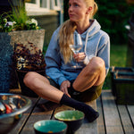 La maglia ha una tasca a canguro che scende sopra le costole, rende la tasca un po' più grande e conferisce alla maglia un bel dettaglio che non si vede nelle altre felpe. Il taschino e l'apertura della tasca sono cuciti con una cucitura flatlock. Nella parte superiore e inferiore dell'apertura della tasca sono presenti delle scanalature per rendere la tasca più resistente.